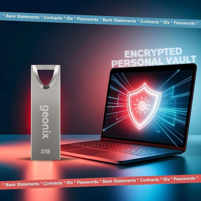 The GEONIX 32GB USB 2.0 Pen Drive features a durable alloy zinc body with a sandblasted metallic finish, offering strong resistance against water, dust, and shock. With up to 60MB/s read speed and lightweight construction, it is ideal for daily data storage, secure portability, and convenient attachment to keyrings.