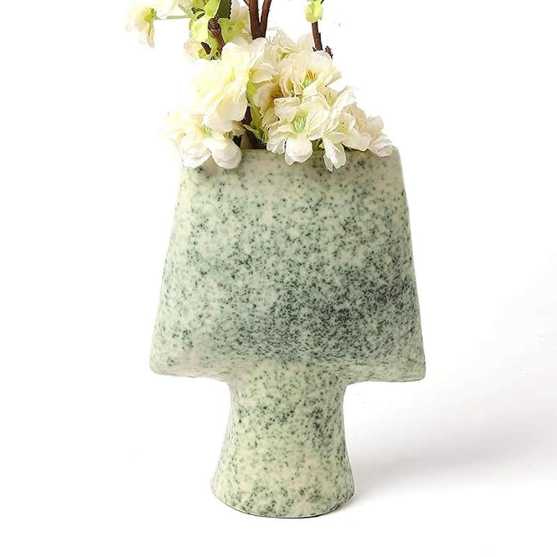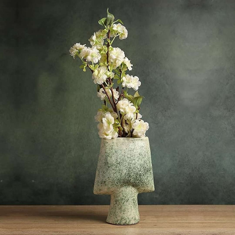 Elegant green ceramic jar vase from Habere India, featuring a glossy bohemian design. Perfect for home décor, tabletop display, or gifting on all occasions. Durable, eco-friendly, and easy to maintain.