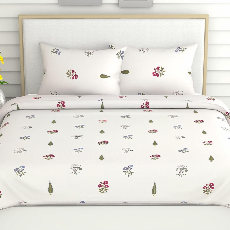 Experience comfort and elegance with the Haus & Kinder Garden of Joy Queen Size Bedsheet Set. Crafted from soft and breathable 186 TC cotton fabric, this bedsheet offers durability, vibrant floral prints, and a snug fit for both queen and double beds. The set includes two matching pillow covers, features a twill weave for added smoothness, and is easy to maintain with machine-washable care. Perfect for everyday use and ideal as a stylish addition to your bedroom décor.
