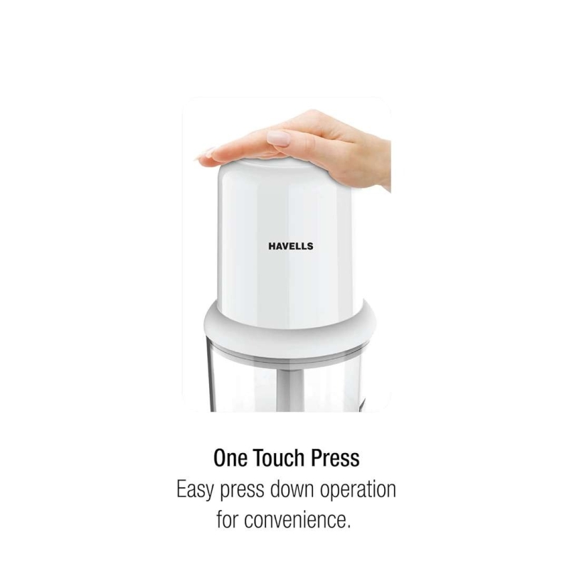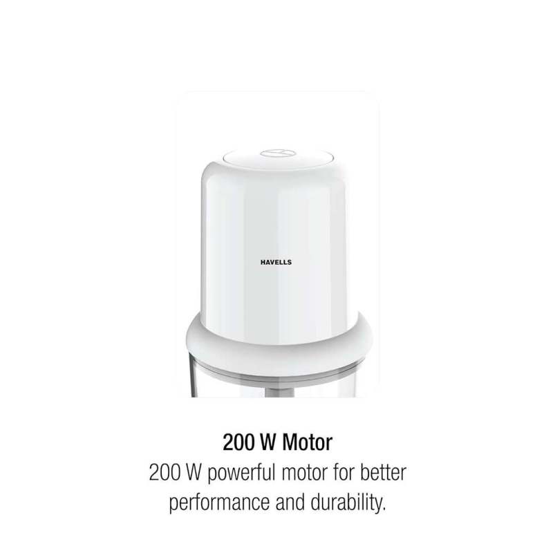 The Havells Coral Electric Chopper is a compact yet powerful kitchen companion featuring a 200W motor and 750ml capacity bowl. With sharp stainless steel blades and a one-touch press operation, it ensures quick and consistent chopping of vegetables, fruits, herbs, and nuts. Designed for convenience and portability, it includes detachable, dishwasher-safe parts and operates quietly. Ideal for modern kitchens, this electric chopper saves time and effort while offering a 2-year warranty for worry-free use.