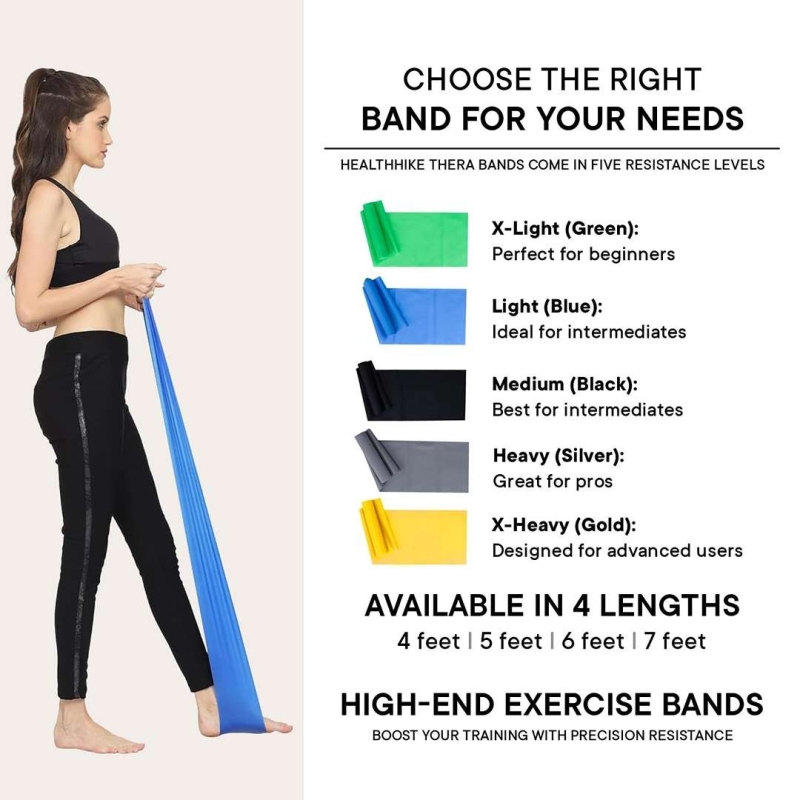 The HealthHike Latex-Free TheraBand is designed to enhance your workout with five resistance levels, making it perfect for beginners to advanced users. Ideal for Yoga, Physiotherapy, Rehabilitation, and Resistance Exercises, this anti-allergic, tear-resistant, and eco-friendly band is soft on the skin and portable for on-the-go workouts. With its 1.5m length and 5-inch width, it offers more flexibility and effectiveness than regular-sized bands. Whether at home, the gym, or outdoors, elevate your fitness routine with HealthHike.