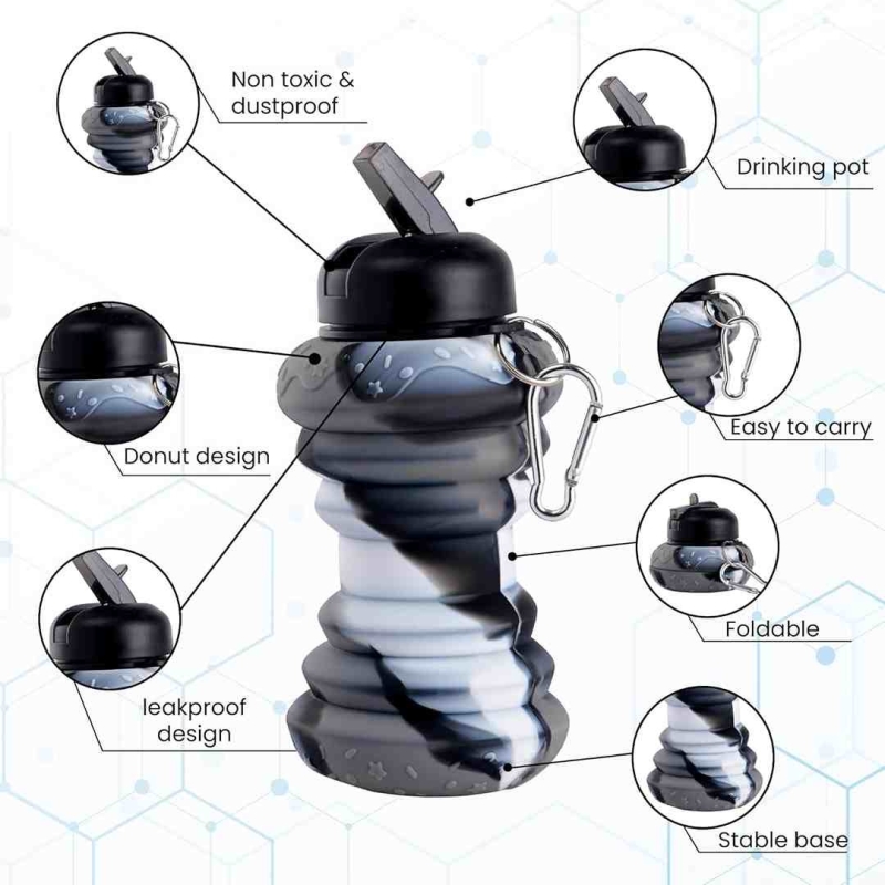 The Heart Home 600ml Black Collapsible Silicone Water Bottle is a stylish, portable, and space-saving hydration solution. Made from food-grade, BPA-free silicone, this leak-resistant bottle is safe for daily use by kids and adults. Its collapsible design allows it to fold to half its size, making it perfect for travel, school, gym, and home use. Durable, reusable, and easy to clean, this bottle combines functionality with a trendy design.