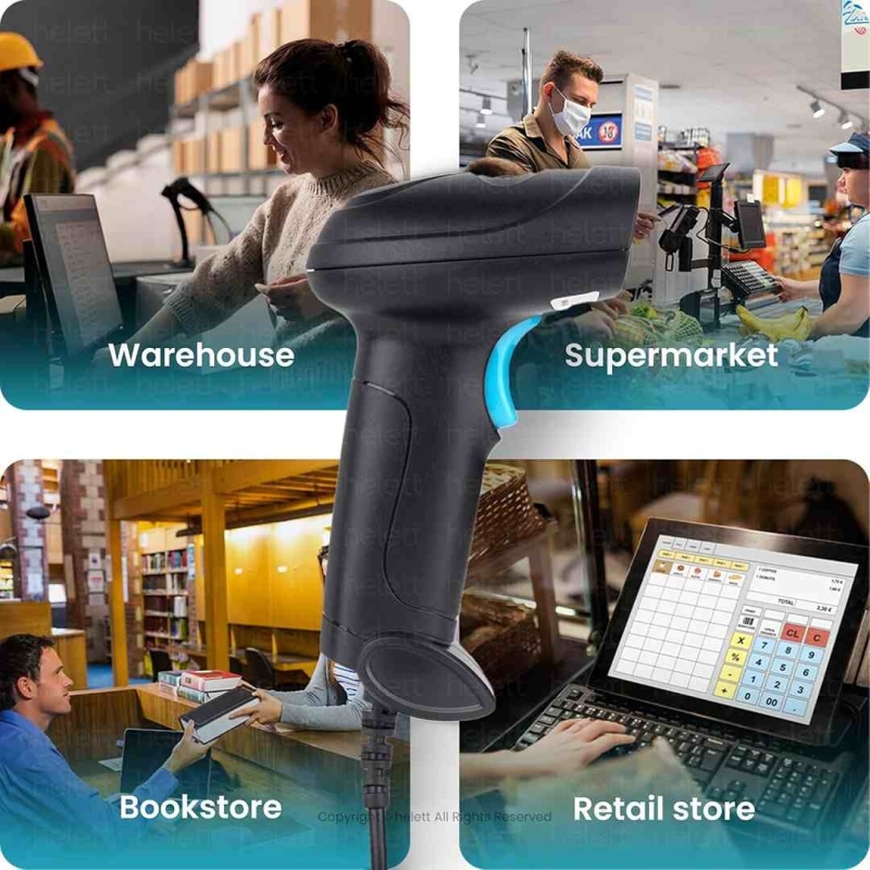 The Helelt HT410 is a handheld 2D barcode scanner offering plug-and-play convenience with high compatibility across Windows and Linux systems. It quickly scans barcodes from labels, screens, or paper and decodes a wide variety of 1D and 2D codes, making it ideal for retail, warehouse, healthcare, and payment applications.