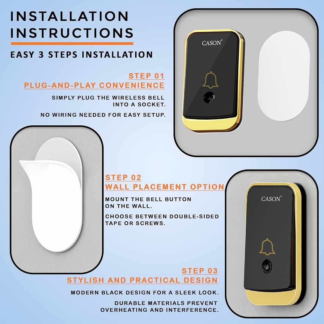 CASON - Wireless Door Bell for Home Long Range/Door Bell wireless For Home/Wireless Calling Bell,