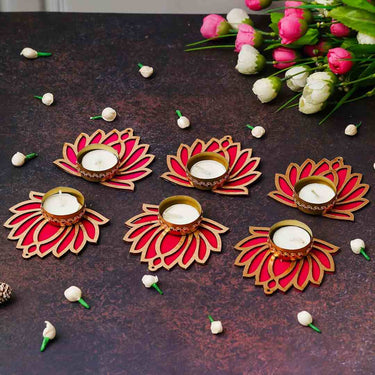 eCraftIndia Golden and Pink Lotus Flower Tea Light Candle Holders (Pack of 6)