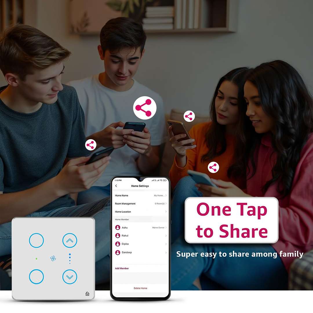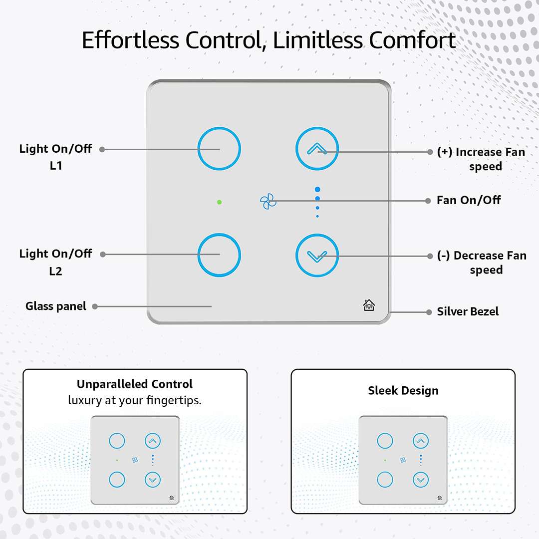 HomeMate 4 Modular WiFi Smart Switch Board (White): 2 x Lights Switch and 1 x Fan switch (Pack of 1) |