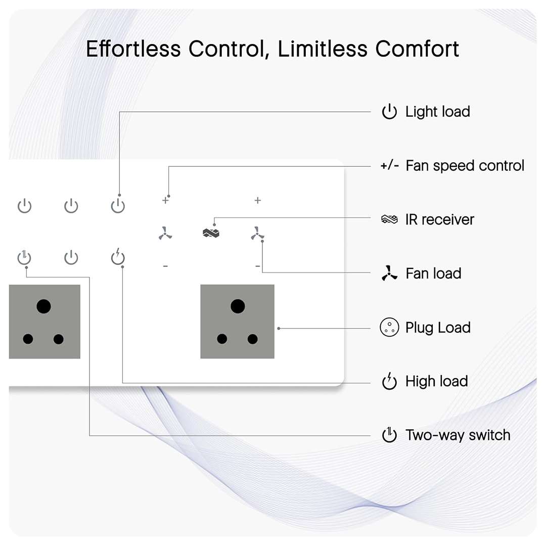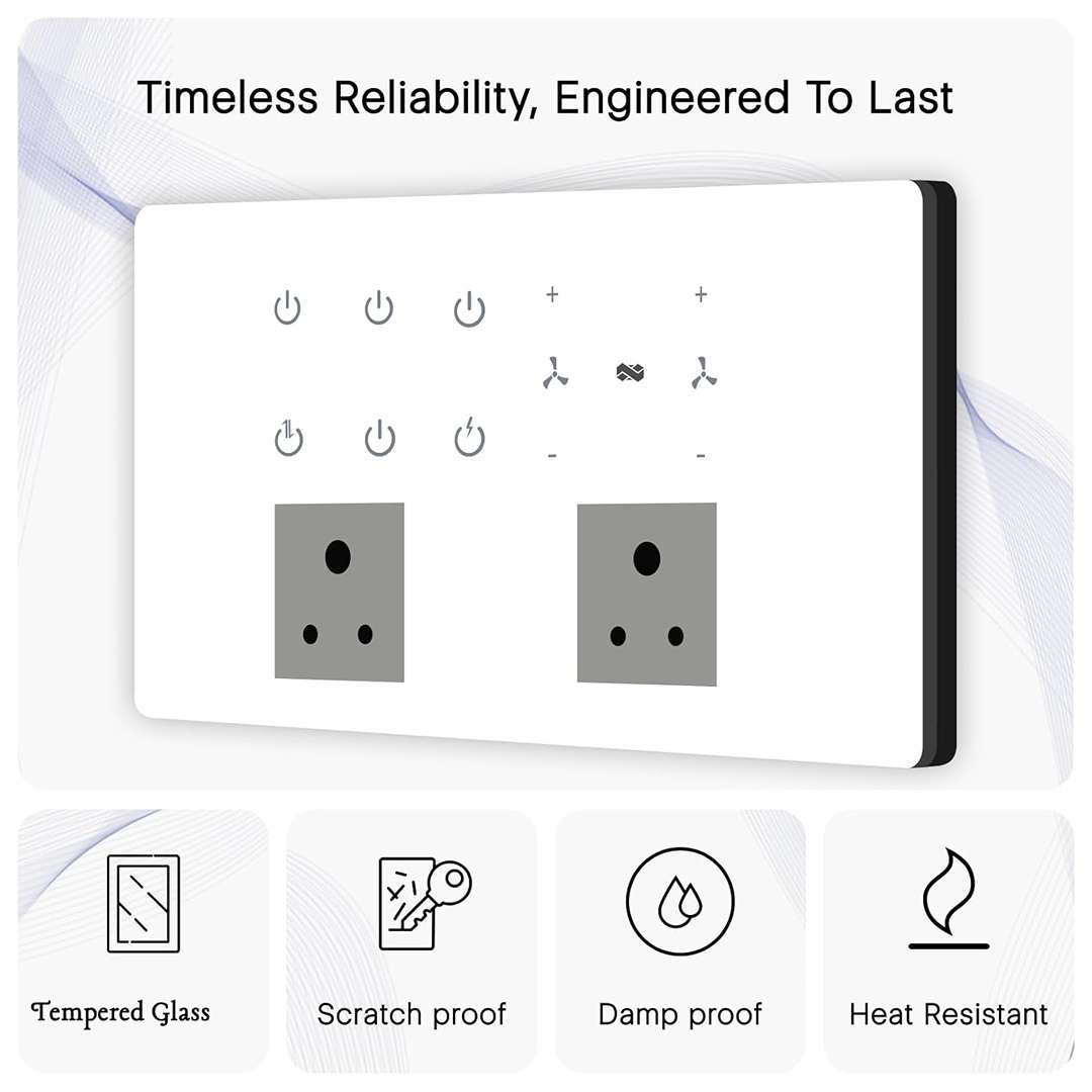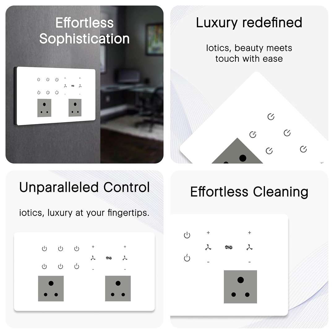 IOTICS Smart Wifi Switch Board: 6 x Switch, 2 Fan & 2 Smart Plug Module. Touch Control, Remote, App Control. Voice Control with Alexa & Assistant. Smart Touch Switch Board For Home Automation (White)