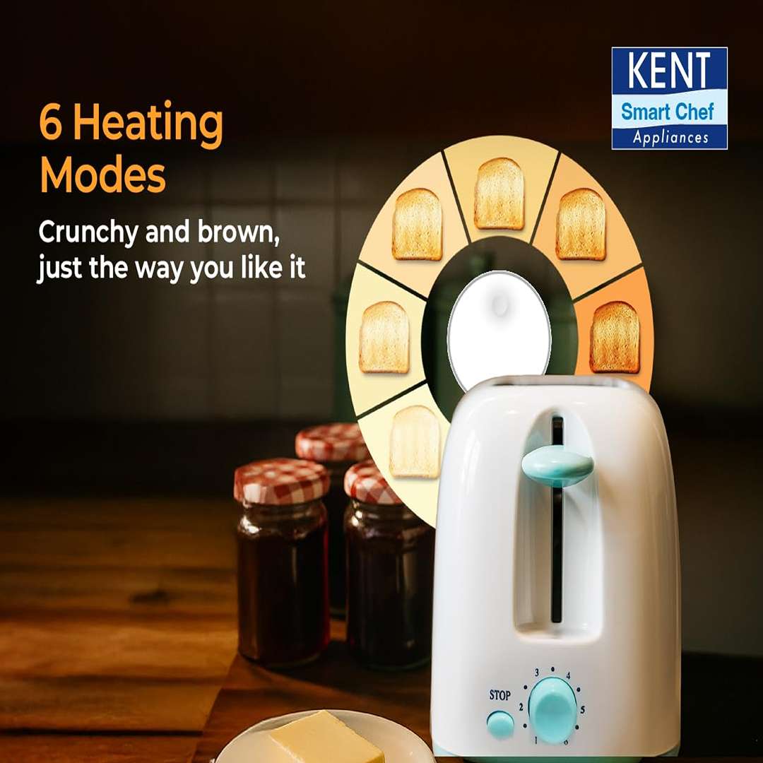 Kent Crisp Pop Up Toaster 750 Watts | 2 Slice Automatic Pop Up Electric Toaster | 6 Heating Modes