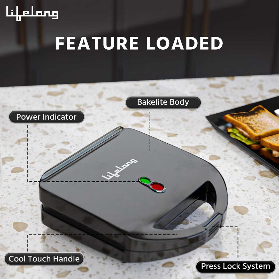 Lifelong Sandwich Griller 750 W, Classic Pro - Auto Cut off & Power Indicator | Sandwich Maker with 4 Slice Non-Stick
