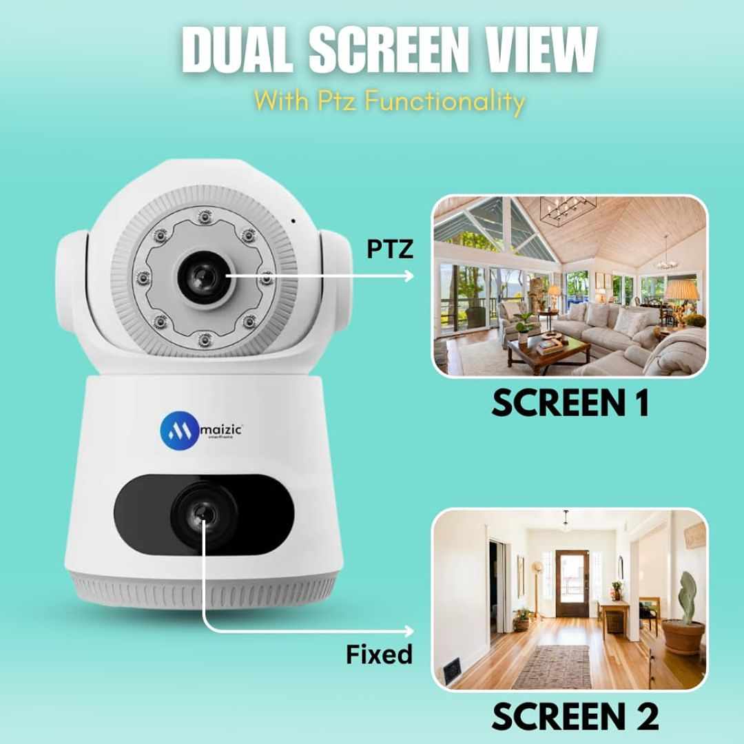 The Maizic Smarthome MSH-21082024 is a high-performance indoor PTZ Wi-Fi camera designed for 24/7 smart surveillance. Equipped with dual 5+5MP lenses, it delivers 1080p HD clarity and a full 360° panoramic view. Key features include color night vision (up to 15–20 meters), AI human detection, auto tracking, digital zoom, and two-way audio. With a weatherproof ABS body, remote app control (via V380Pro), and compatibility with Android, iOS, PCs, and laptops, it’s ideal for home, office, or business monitoring.