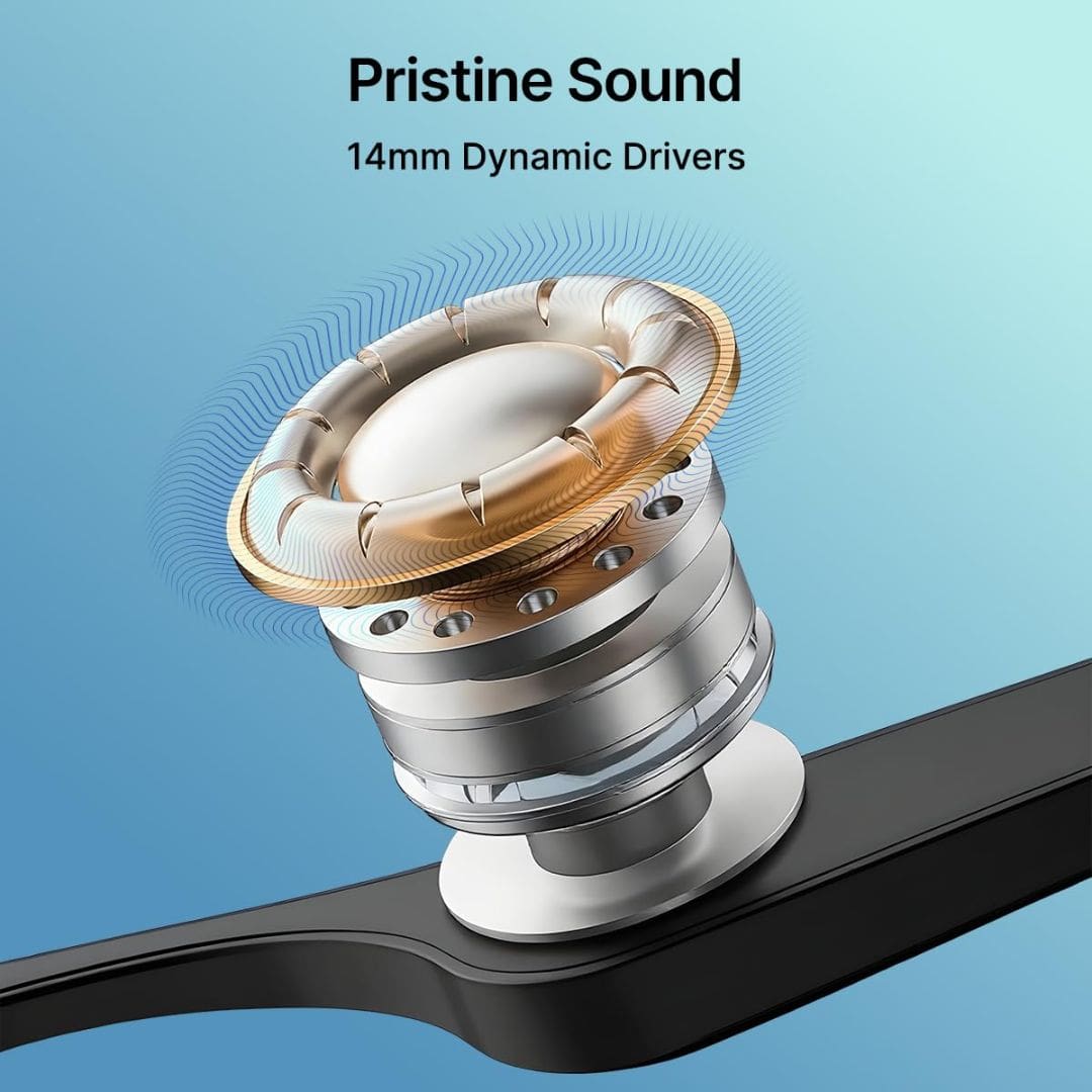 pTron Orbis Neo Open-Ear Bluetooth Sunglasses combine style, comfort, and smart audio. With built-in HD mic, Bluetooth v5.4, and 14mm dynamic drivers, enjoy crystal-clear music and calls while staying aware of your surroundings. Ultra-light at just 30g, they protect your eyes from UV rays, dust, and dirt while giving up to 7 hours of playtime. Quick 1.5hr charging, voice assistant access, and multifunction button controls make them ideal for hands-free outdoor use.