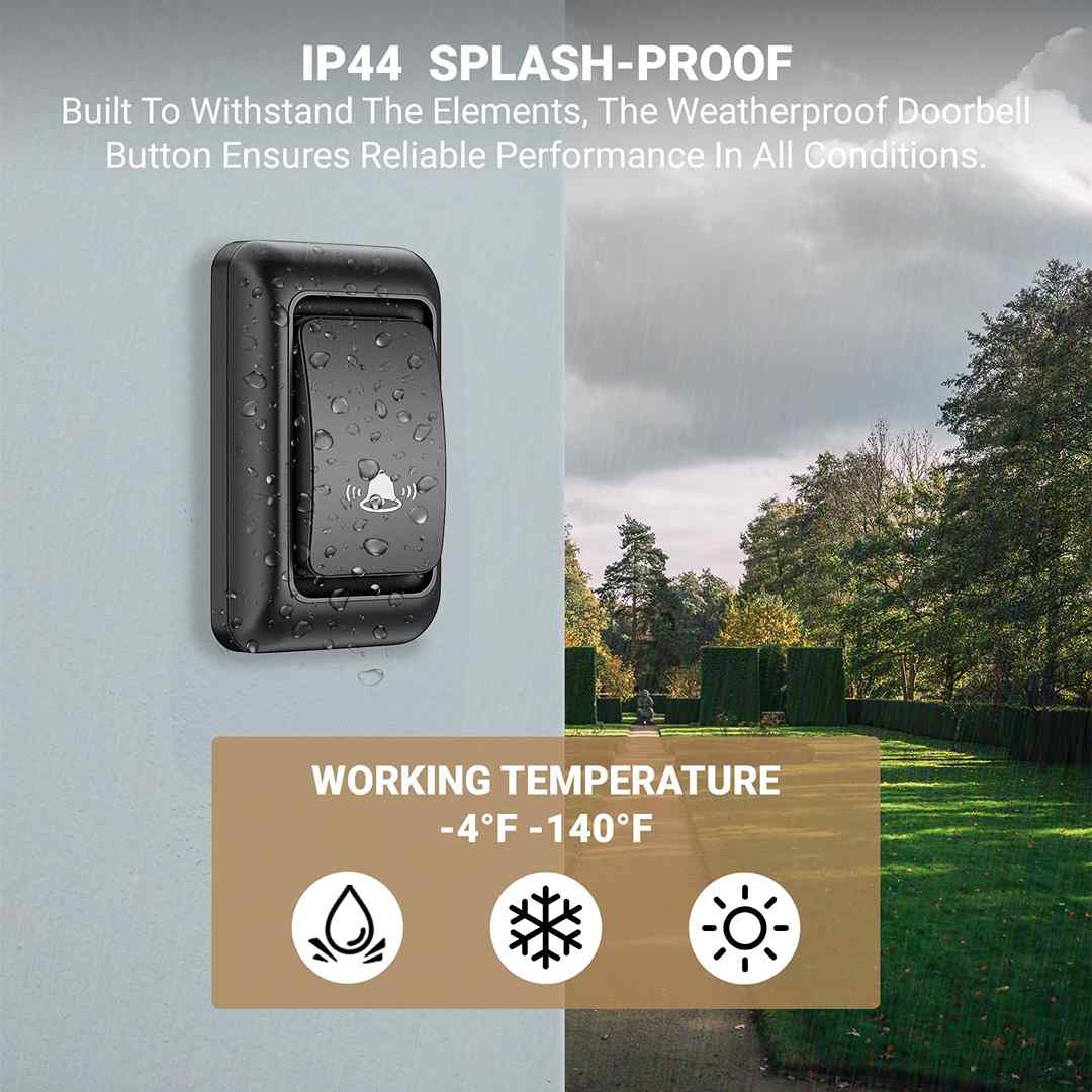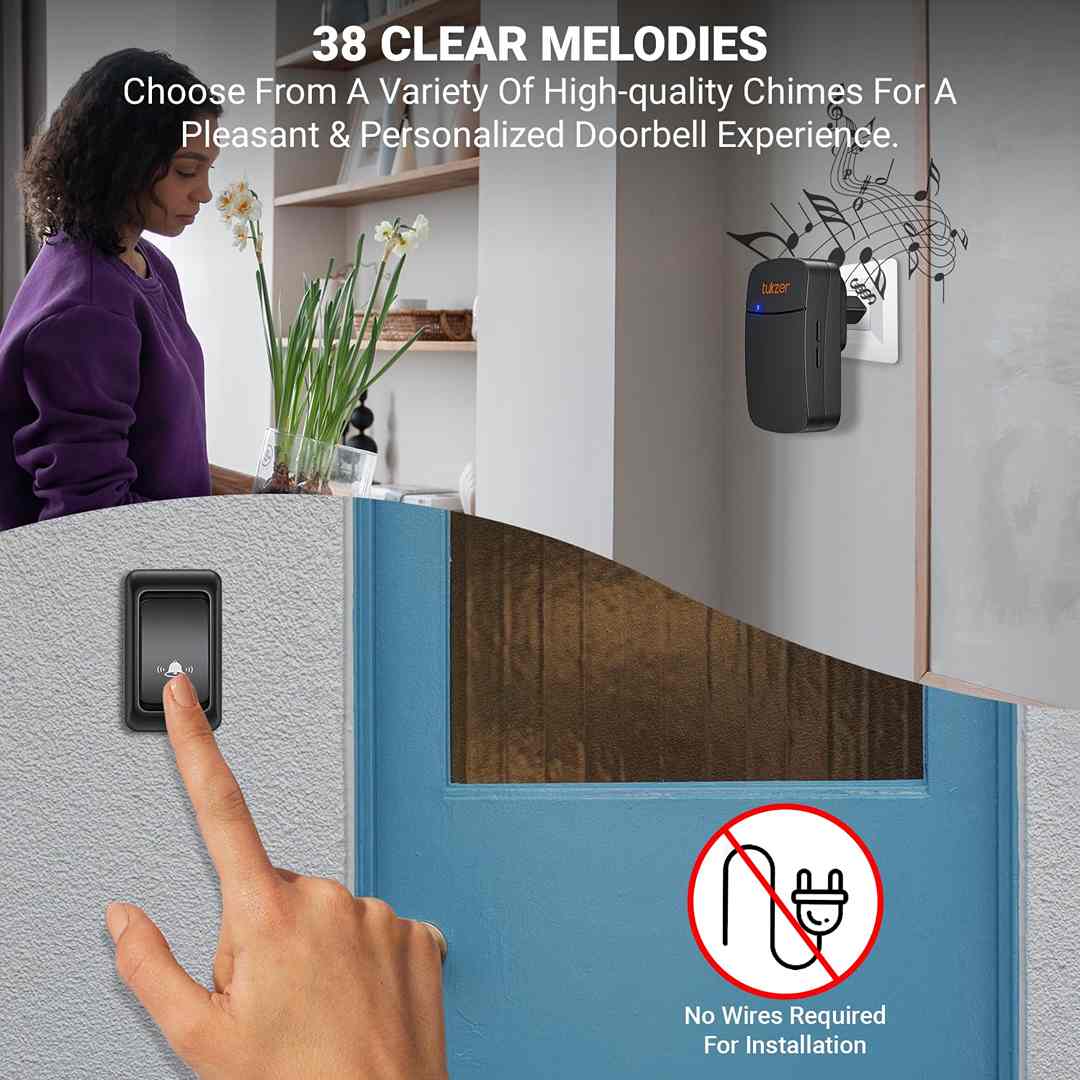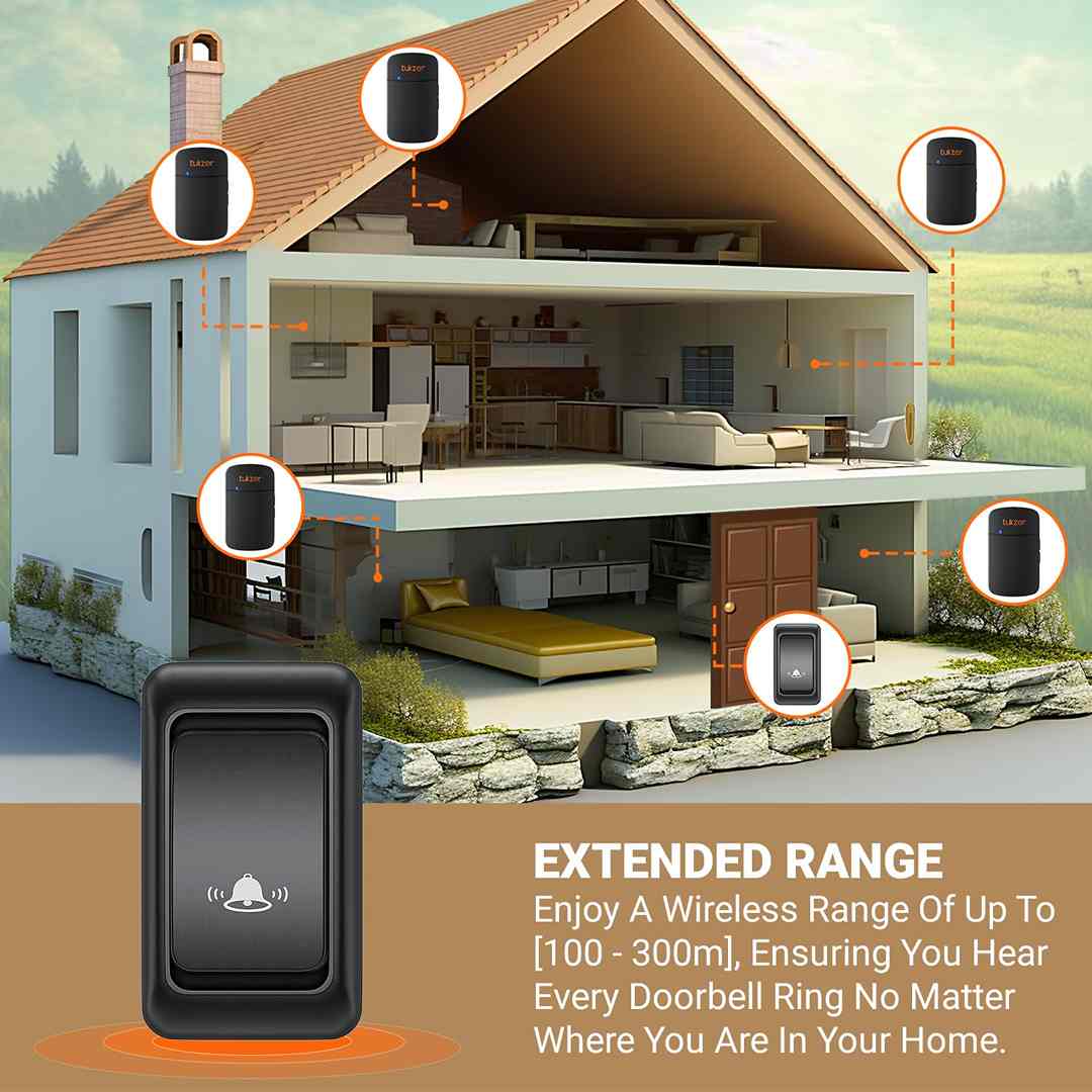 The Tukzer TZ-DB-01 Wireless Doorbell offers 38 chime options and 3 adjustable volume levels to suit various preferences and occasions. With an extended wireless range of up to 300 meters, splash-proof IP44 design, and simple plug-and-play setup, it’s perfect for homes, offices, shops, hotels, and more. Built from durable ABS material, it ensures reliable performance indoors and outdoors in all weather conditions.