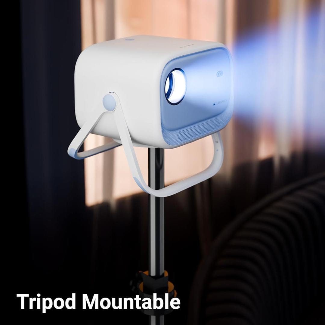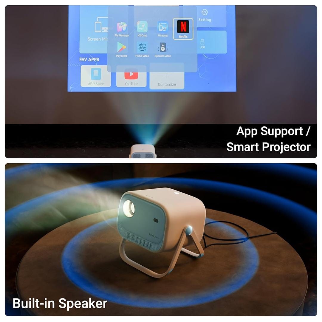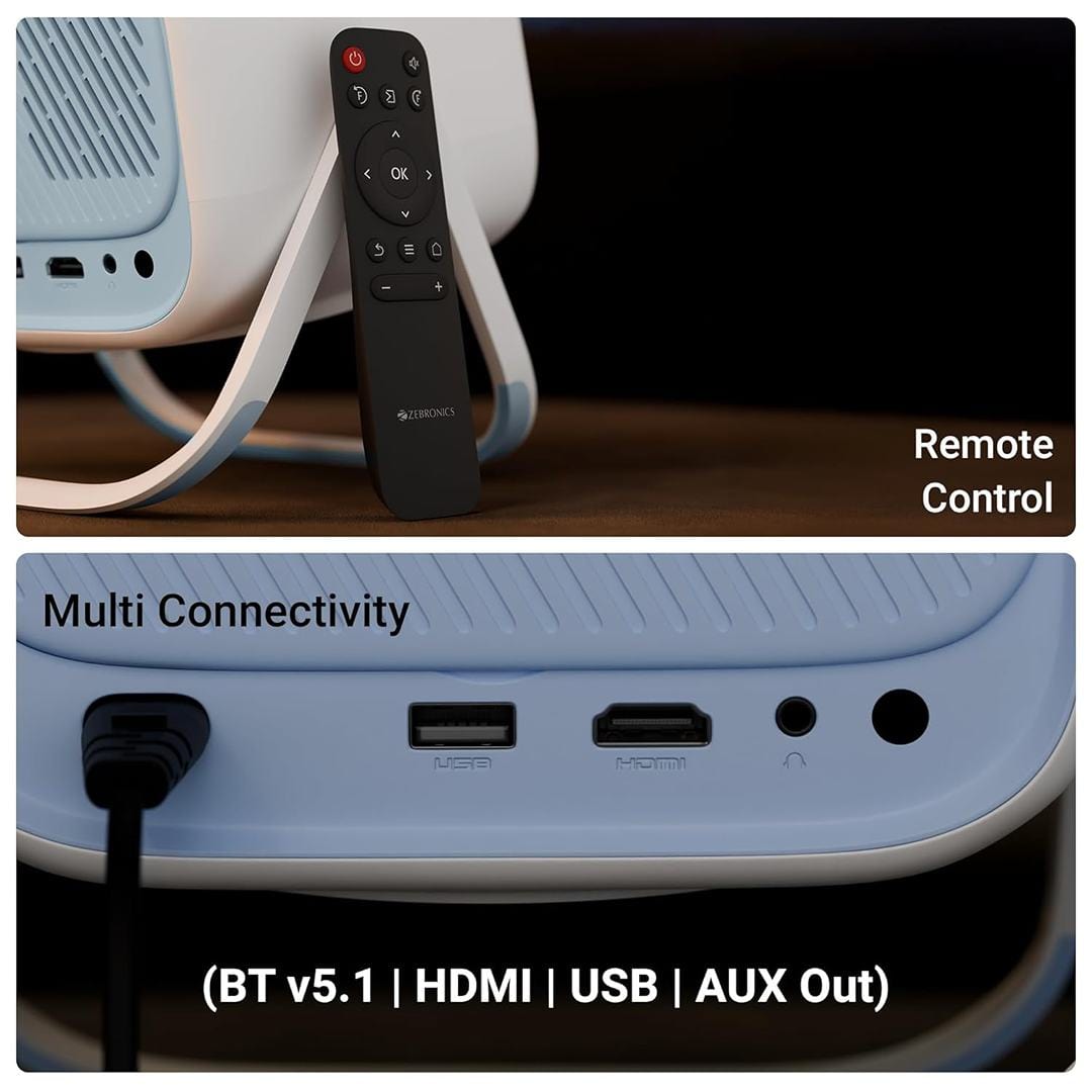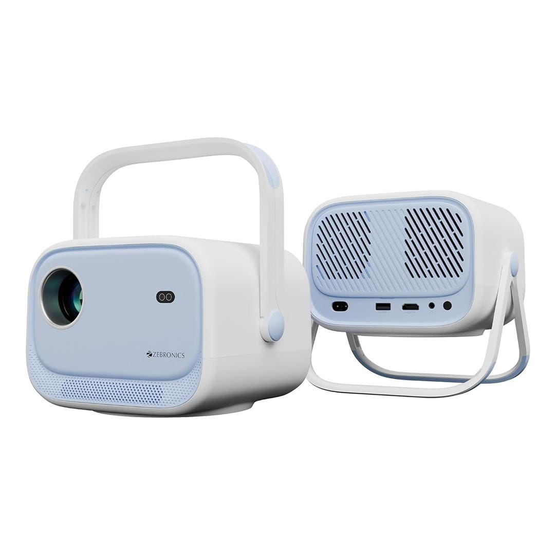 ZEBRONICS Android Smart Projector, 1080p, 5200 Lumens, 200" Screen, 200° Tilt, Auto Focus, Auto Keystone, Auto Sensor Tech, BT, WiFi, App Support (Netflix, Prime, etc), Miracast (Pixaplay 34, Blue)