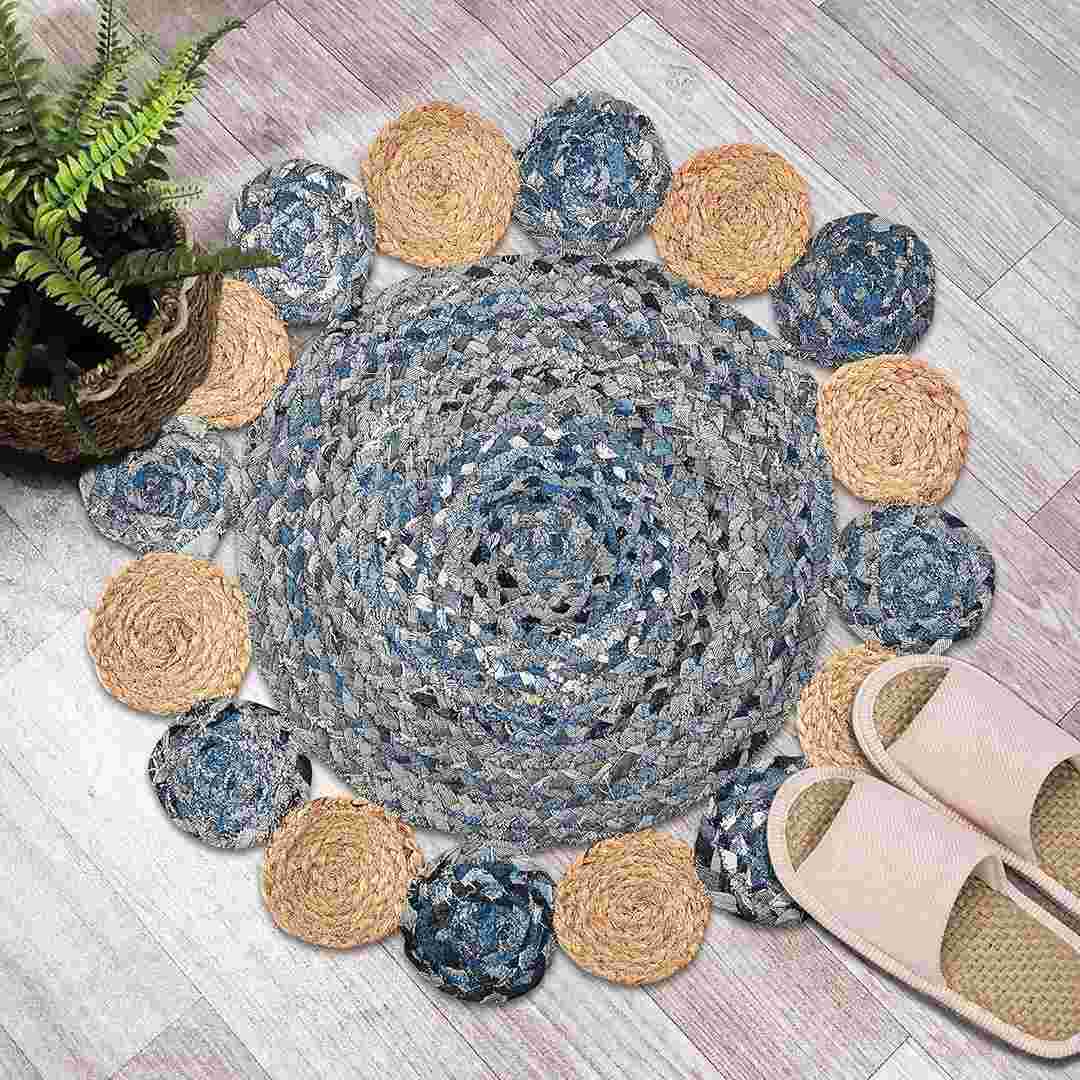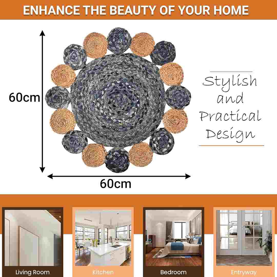 The Kuber Industries Round Jute Doormat (Blue & Brown, 60 cm) is a beautifully handcrafted, eco-friendly floor mat designed to add elegance and practicality to your home. Made from natural jute with a floral blue & brown pattern, it blends aesthetic appeal with durability. Ideal for indoor use, this round mat helps keep your entrance clean by trapping dirt and debris. It’s water-repellent, stain-resistant, and easy to clean, offering a long-lasting and stylish solution for your doorways.