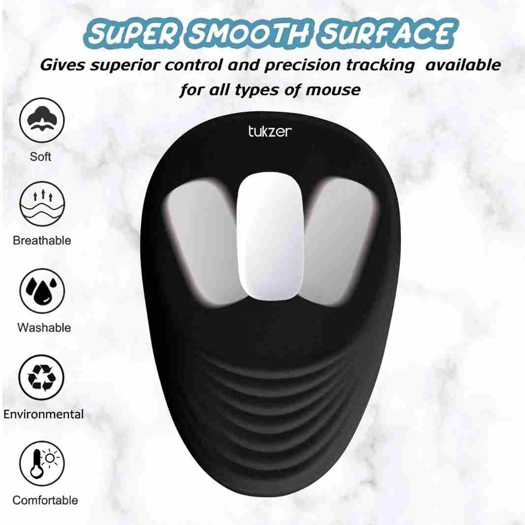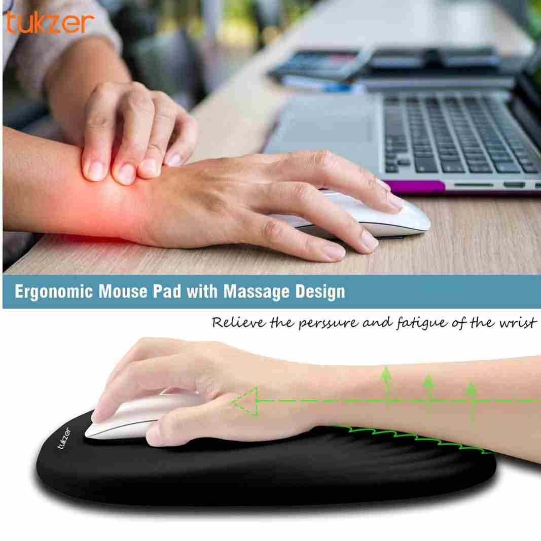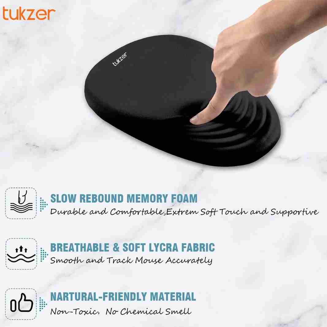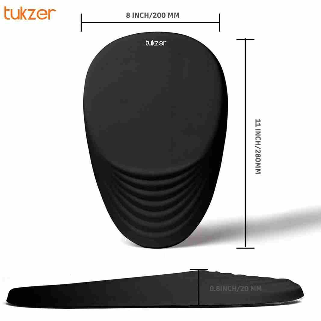 The Tukzer Ergonomic Mouse Pad in Jet Black offers superior wrist support with its innovative 8-degree slope and massage bump design, helping relieve wrist pain and carpal tunnel symptoms. Made with soft Lycra fabric and thick memory foam, it ensures smooth mouse movement, breathability, and long-lasting comfort. Its non-slip rubber base keeps it firmly in place, making it ideal for gaming and office use.