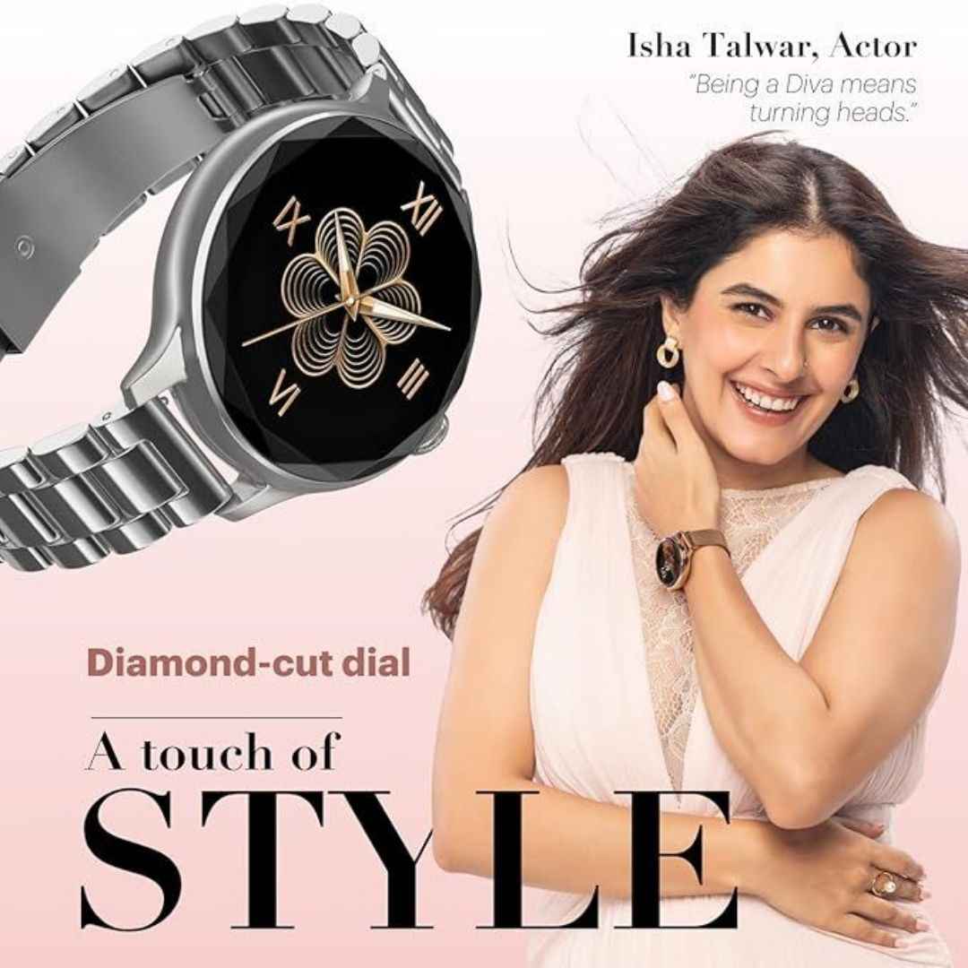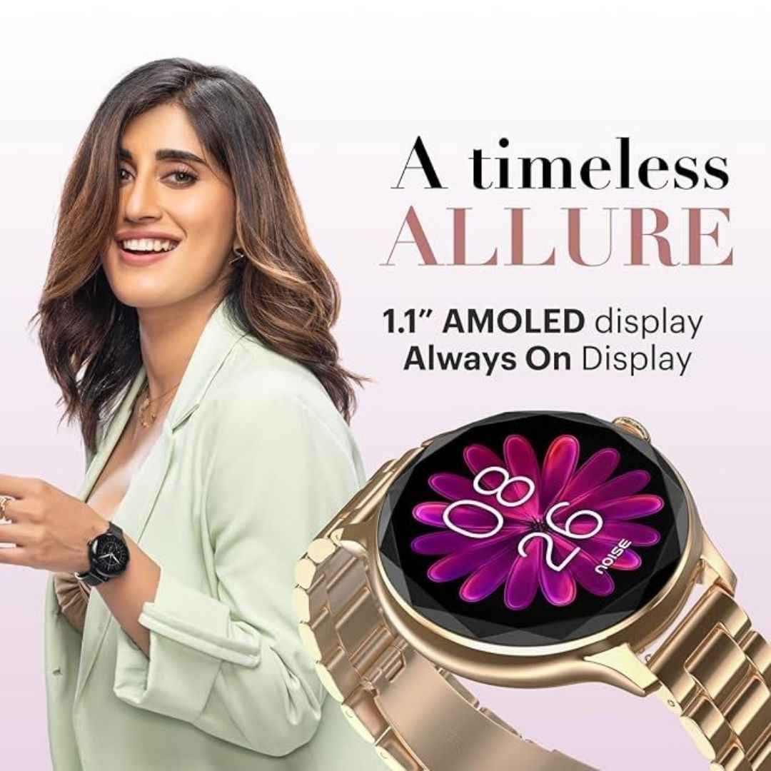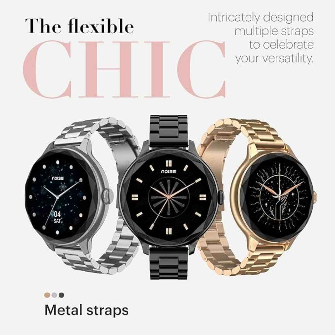 Noise Diva with Diamond Cut Dial, Glossy Metallic Finish, AMOLED Display, Premium Metal Straps, 100+ Watch Faces, Female Cycle Tracker Smart Watch (Rose Gold)