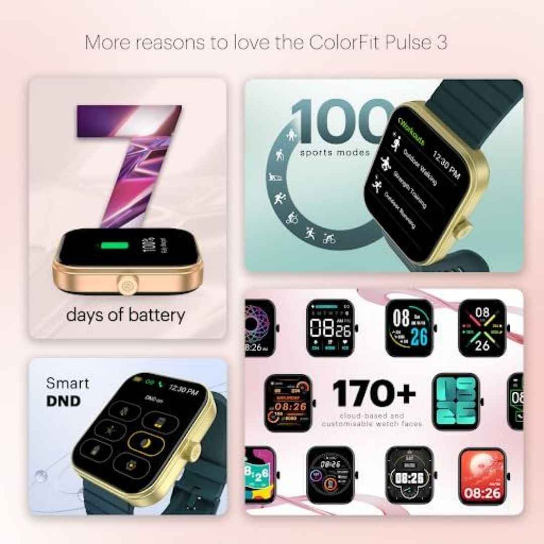 The Noise ColorFit Pulse 3 is a stylish smartwatch featuring a large 1.96" display, 7-day battery life, and seamless Bluetooth connectivity. Lightweight and durable, it supports both Android and iOS devices, making it a perfect companion for fitness and everyday smart needs.