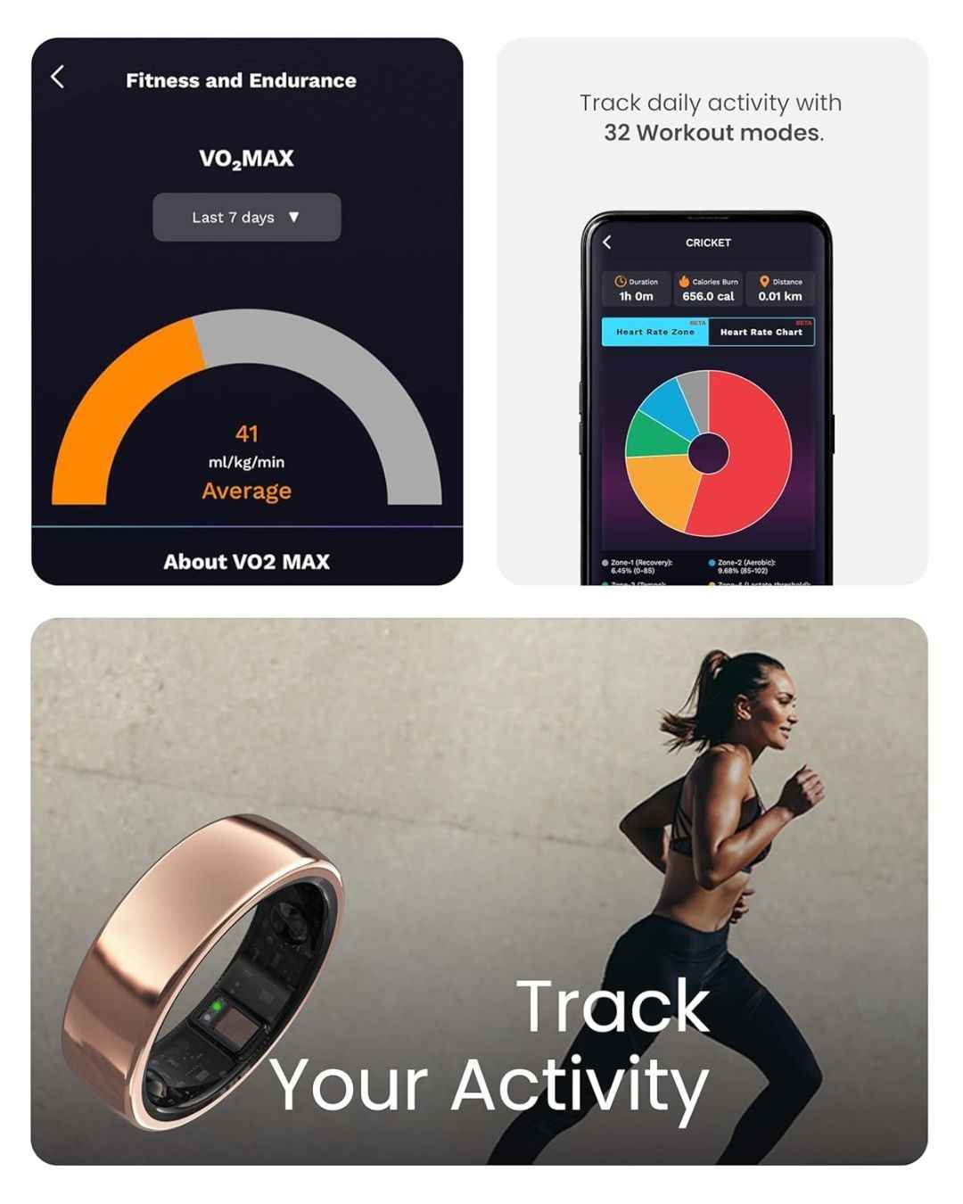 aaboRing Health and Fitness Tracker Smart Ring (US Size No 8 Stellar Silver)