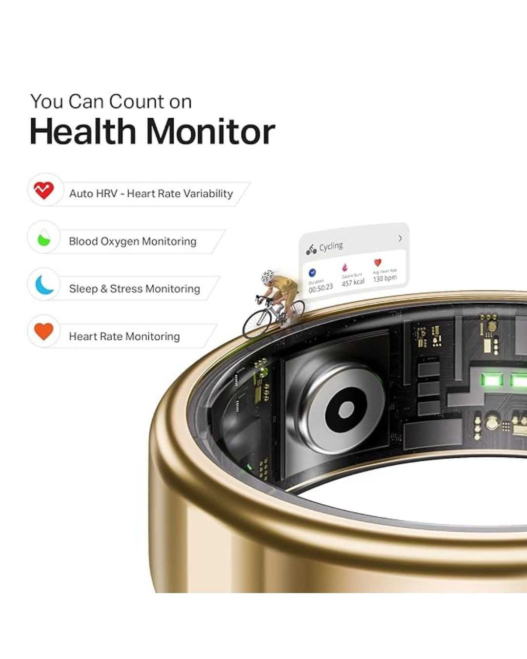 The boAt Smart Ring (Rose Gold) is a sleek, lightweight wearable equipped with advanced health and fitness tracking, Bluetooth connectivity, and long battery life. With a premium finish and compact design, it blends style with smart functionality. Ideal for daily use, it comes with a charging cable and user manual, offering a complete smart accessory experience.