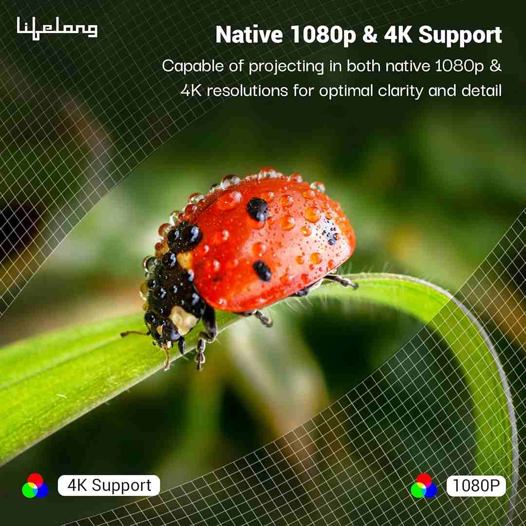 Lifelong Electronics TruePixel Pro Smart Projector | Android, 1080P Full HD Native & 4K Ultra HD Support | 9000 Lumens | For Room & Outdoors | All OTT Apps | WiFi/BT,Mirroring,USB, ARC, HDMI, Speakers