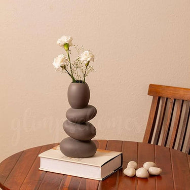 Glimpse Homes Pebble Vase Ceramic Flower Vase 11 inch Whitestone