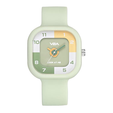 The V2A is a cute and durable kids' watch designed for children aged 4-13 years. Featuring a square dial with color scheme and a comfortable resin band, this watch is water-resistant up to 30 meters, making it perfect for daily activities and outdoor play. The adjustable strap ensures a snug and secure fit for kids of different sizes.