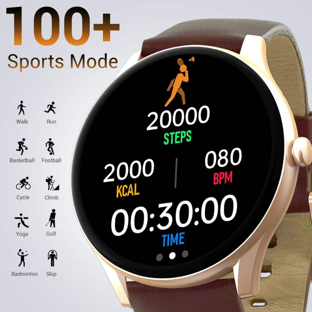 Special Features | 100+ Sports Modes, One Tap BT Calling, Inbuilt Games, Metallic Design, 600 Nits Brightness |