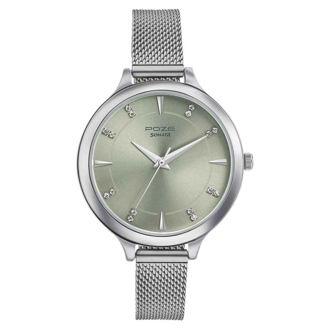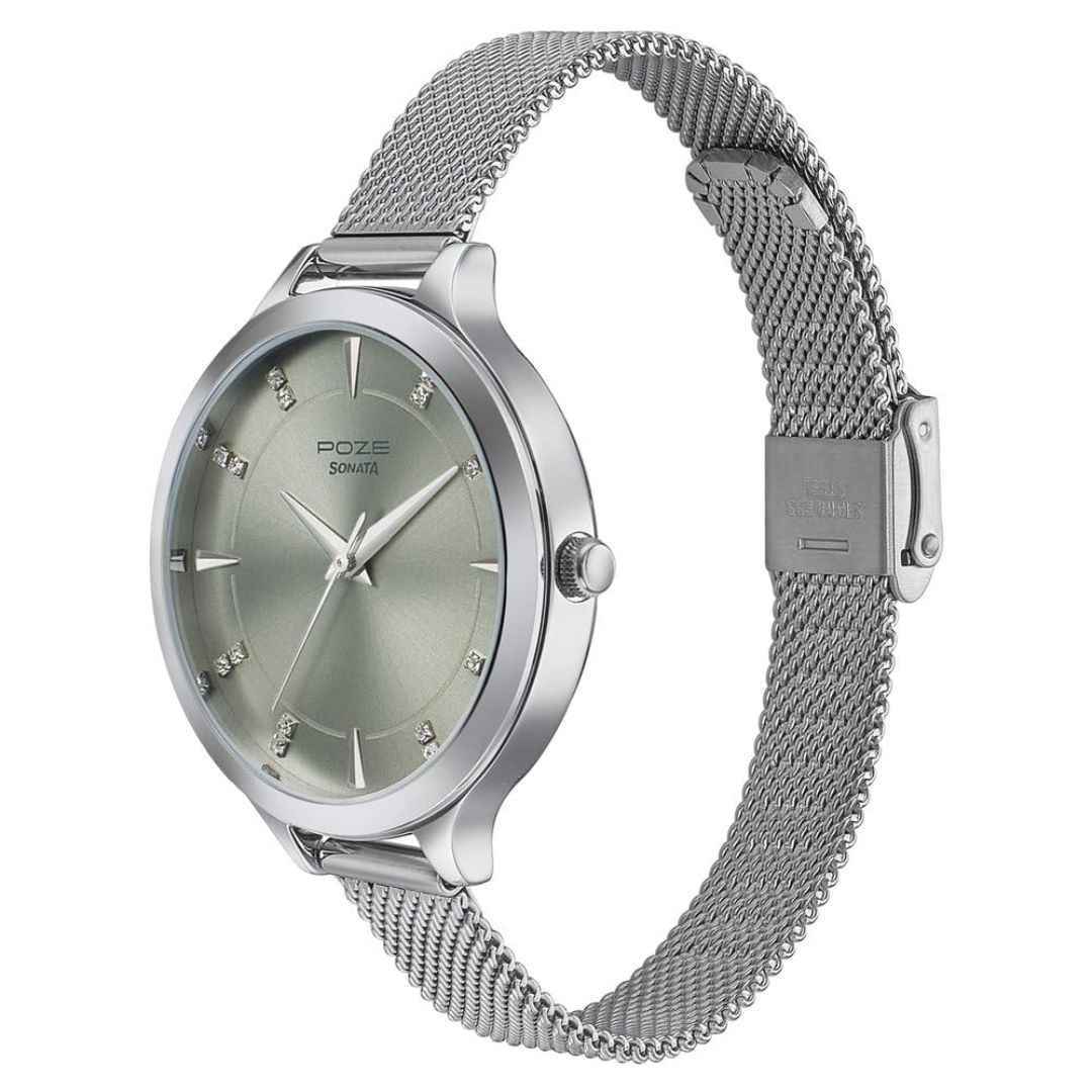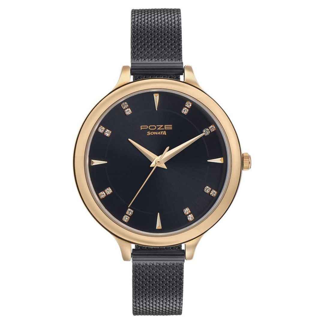 Sonata Poze Quartz Analog Black Dial Metal Strap Watch for Women