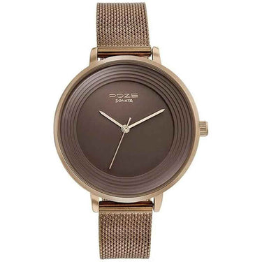 Sonata Poze Quartz Analog Brown Dial Mesh Strap Watch for Women