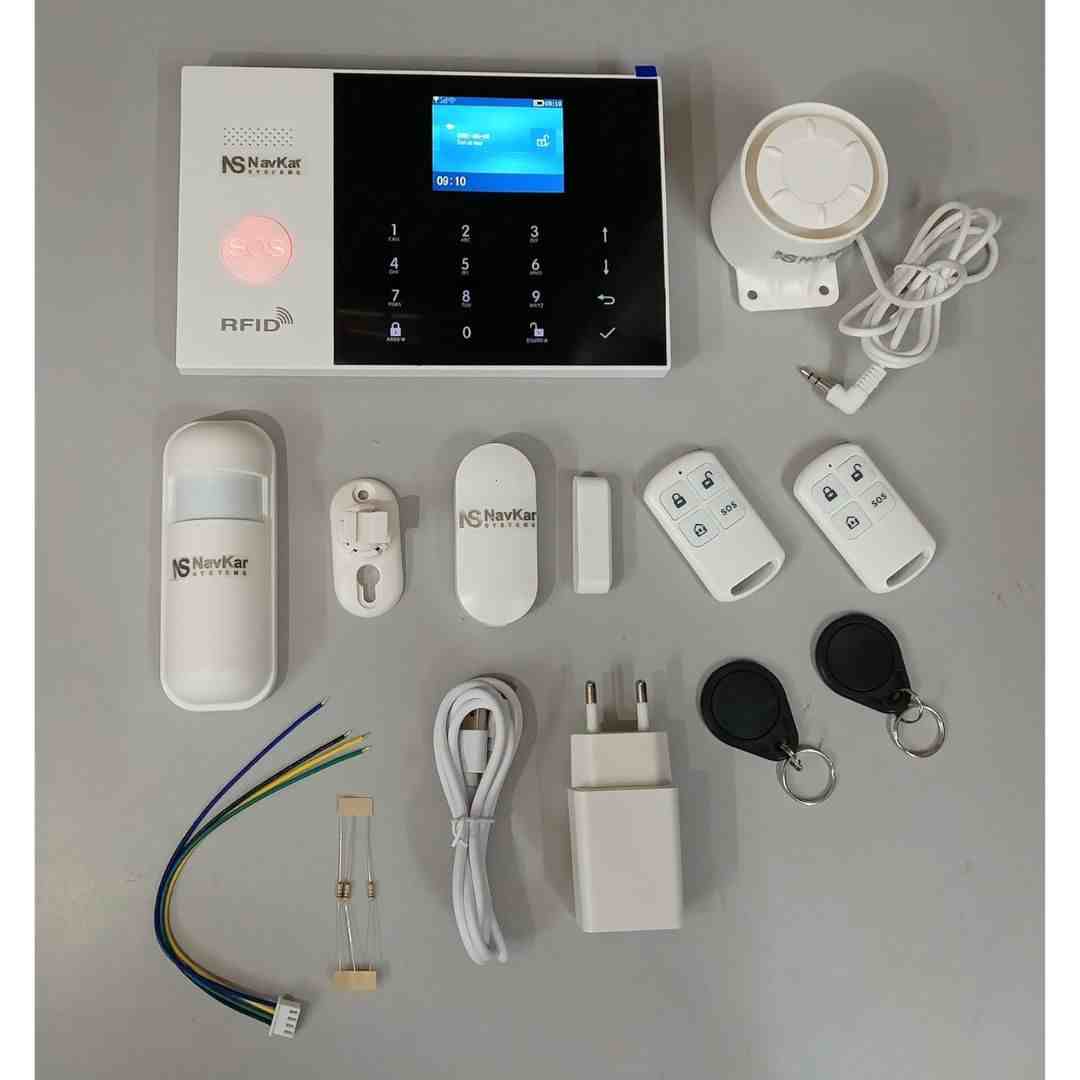 Secure your home or office with the NAVKAR SYSTEMS WiFi + GSM Security Alarm Kit. This DIY wireless system supports up to 100 sensors, offers dual network connectivity (WiFi + GSM), and sends instant calls, SMS, or app alerts in case of intrusion. With a long-range signal, backup battery, and multiple arming modes, it ensures 24/7 protection without monthly fees.