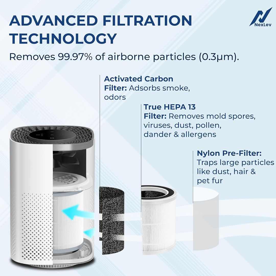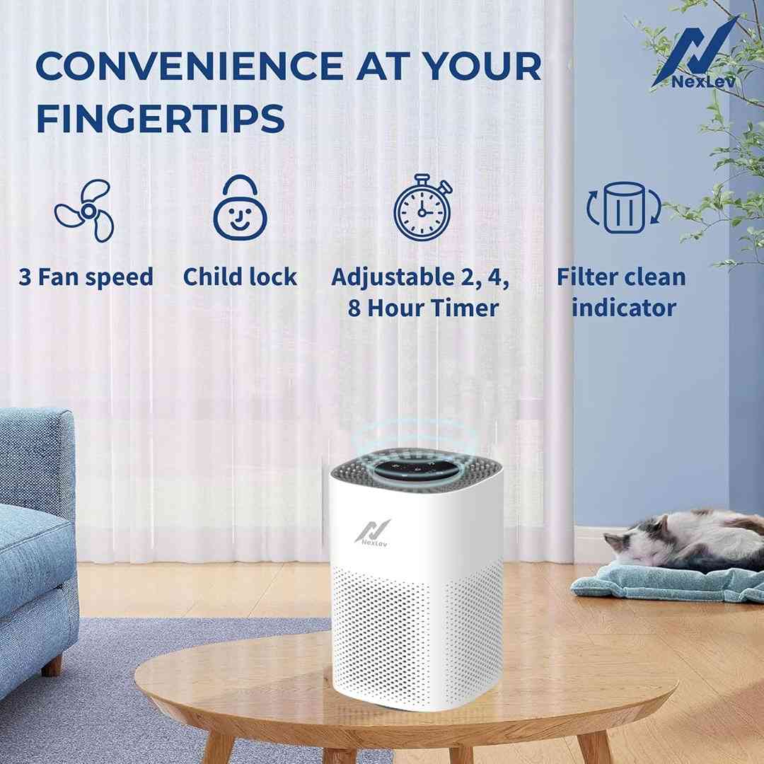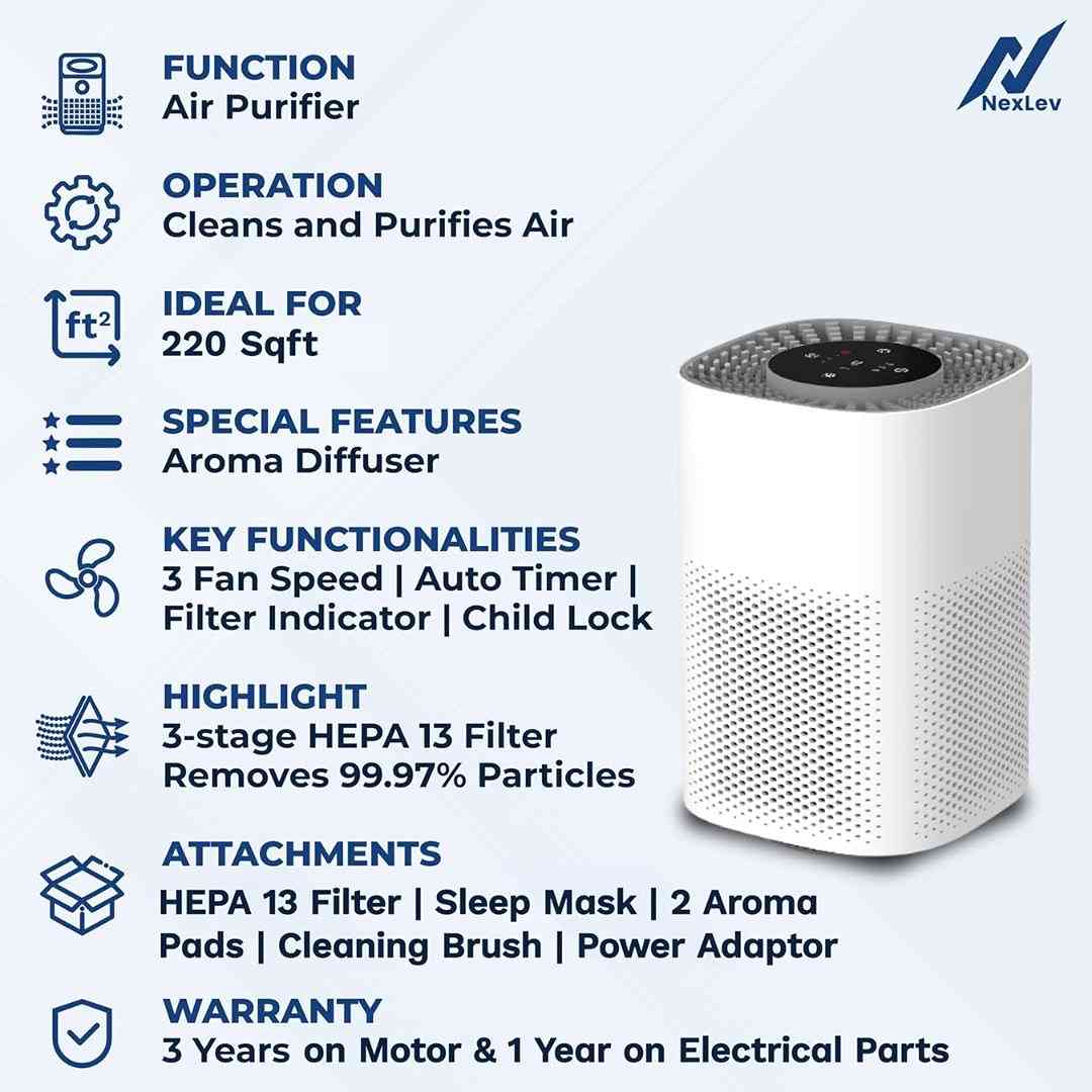 NexLev Smart Air Purifier | Home & Office Use upto 200 sq ft | True HEPA 13 Filter | Eliminate 99.99% Virus Dust Smoke Odor Pollen Allergens & Pollutants | Long Filter Life | 3 Year Warranty | AP220
