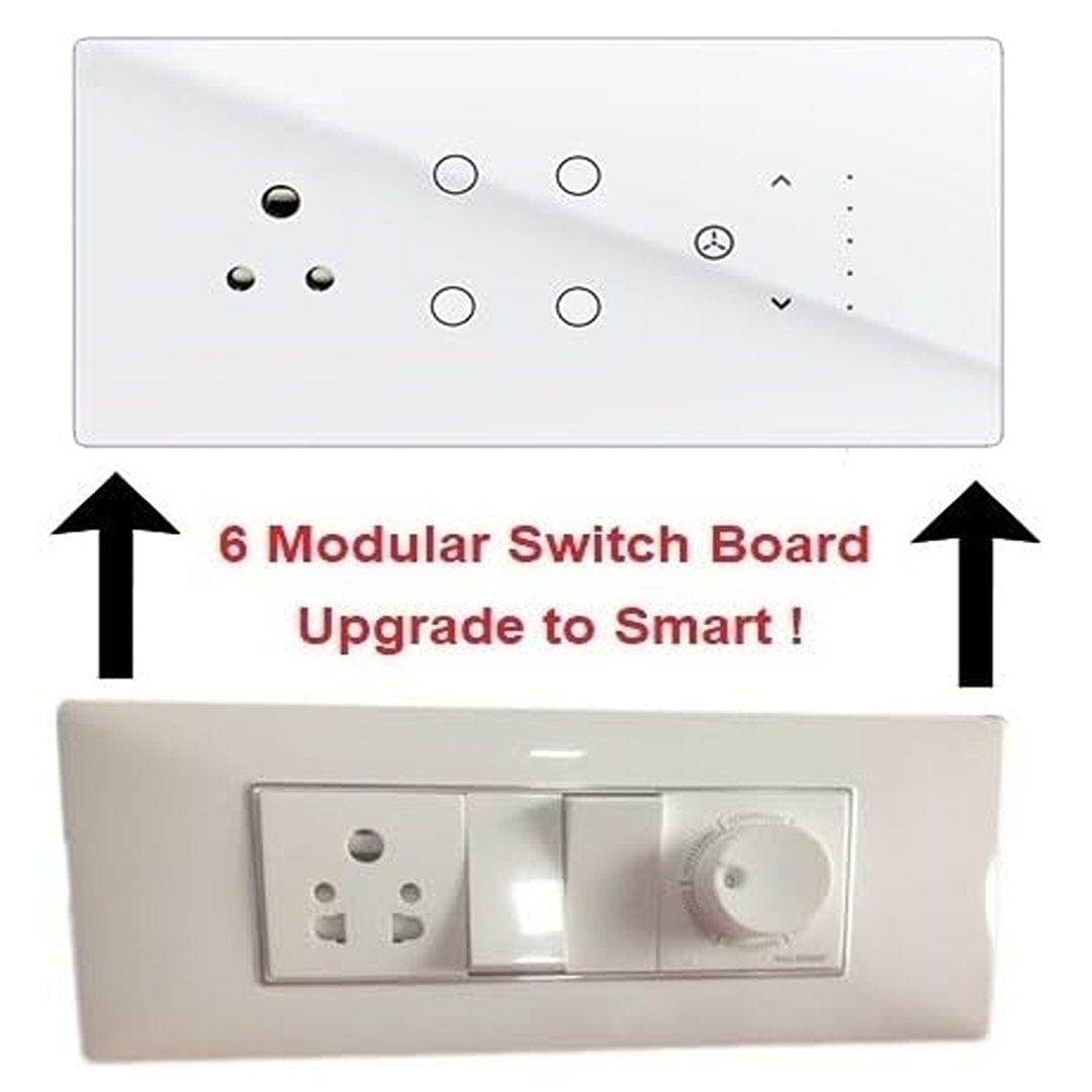 Teqooz Wi-Fi + Bluetooth | 4-Switch + 1 Fan Regulator + 1 Socket Smart Touch Switch Panel | (6M) (White)