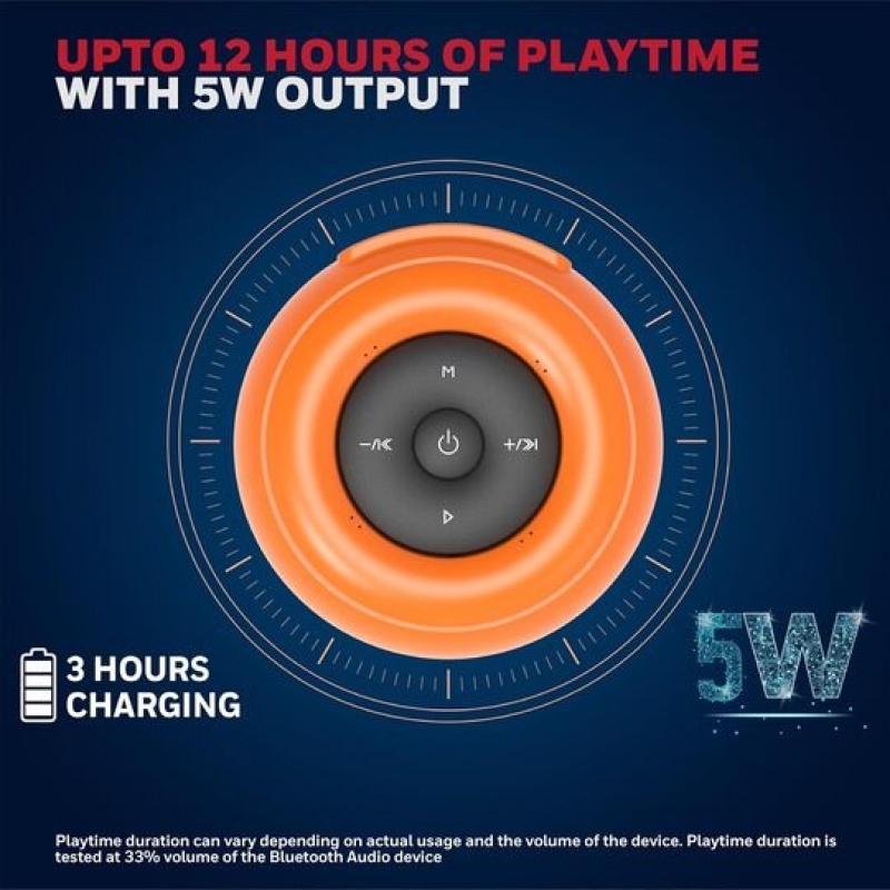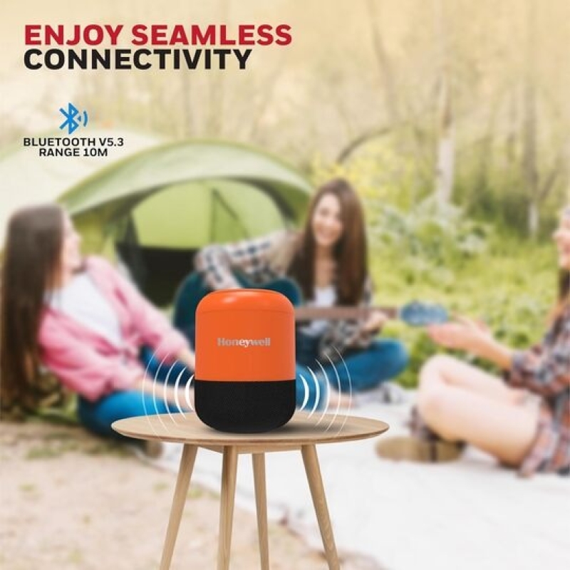 The Honeywell Suono P300 is a compact and stylish 5W portable Bluetooth speaker designed for clear stereo sound on the go. Equipped with Bluetooth v5.3, TWS support, IPX4 water resistance, and a 1200 mAh rechargeable battery, it delivers up to 12 hours of playtime. With multiple connectivity options like Bluetooth, AUX, USB, and TF card, plus an integrated microphone for calls, this speaker is ideal for music lovers seeking portability, durability, and premium sound performance.