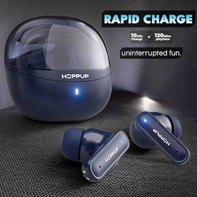 The HOPPUP AirDoze F50 wireless earbuds offer an immersive audio experience with up to 40 hours of total playtime, enhanced by Bluetooth 5.4 connectivity and Type-C fast charging. A quick 10-minute charge provides up to 120 minutes of playback, making it perfect for those on the go. Featuring a sweatproof, noise-canceling design, touch controls, and a lightweight in-ear form, the F50 is ideal for fitness, entertainment, and gaming.