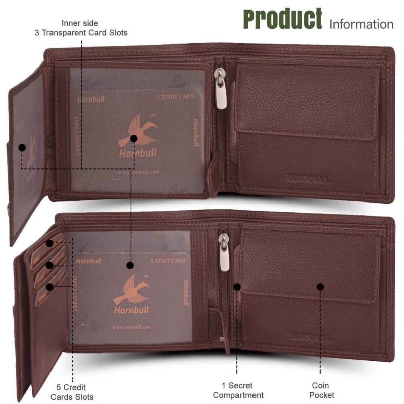 The HORNBULL Two-Fold Leather Wallet is a stylish and durable men’s accessory crafted from premium top-grain leather with a soft polyester lining. Designed for everyday convenience, it offers multiple compartments including 7 card slots, a transparent ID window, money pockets, a zipper pocket, and a coin pouch. Equipped with RFID-blocking technology, it ensures protection against unauthorized scans. Packed in an elegant gift box, it makes a perfect gift for any occasion and remains slim even when fully loaded.