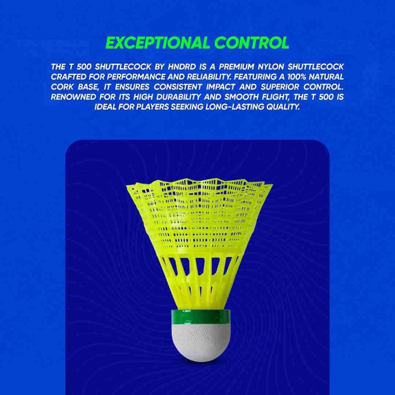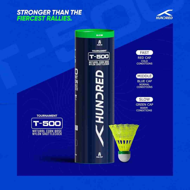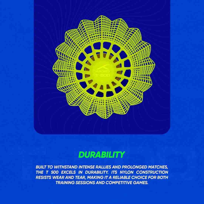 The HUNDRED T-500 Nylon Shuttlecock is designed to deliver smooth flight, consistent control, and long-lasting durability. Built for both match play and training sessions, it offers reliable performance that helps players maintain accuracy and confidence throughout every game.