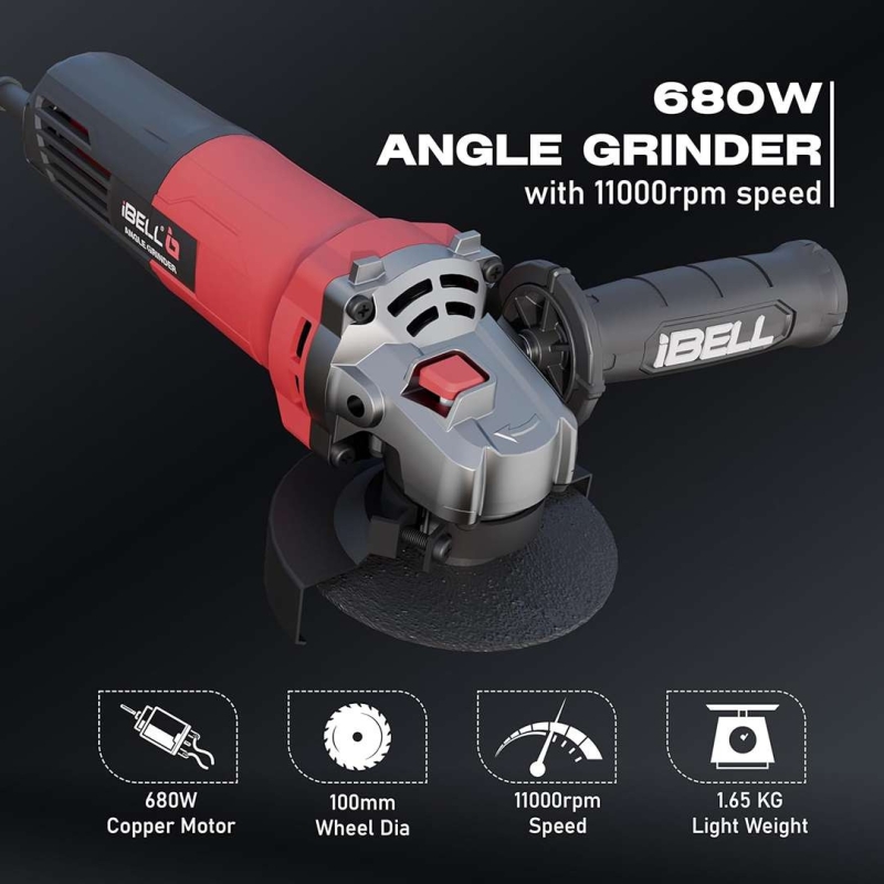 The IBELL TOOLS 680W Angle Grinder is a compact and powerful corded electric tool designed for efficient cutting and grinding tasks. With a high no-load speed of 11,000 RPM, lightweight build, and durable metal-plastic construction, it is ideal for both home users and light professional applications.