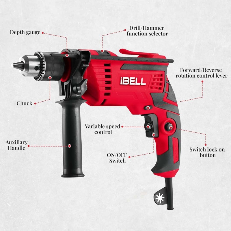 The iBELL TOOLS ID13-75 Impact Drill Machine is a powerful 650W corded electric drill designed for wood, metal, and masonry applications. With dual drilling and hammer modes, 2-speed gear control, adjustable speed, and forward/reverse rotation, it delivers precision, versatility, and reliable performance for both DIY and professional tasks.