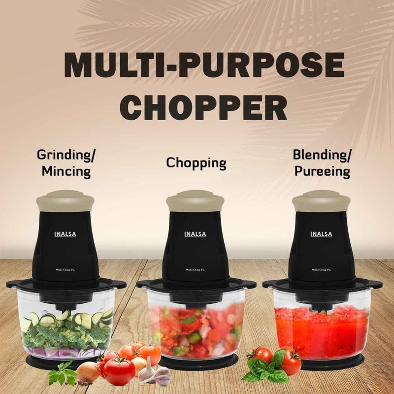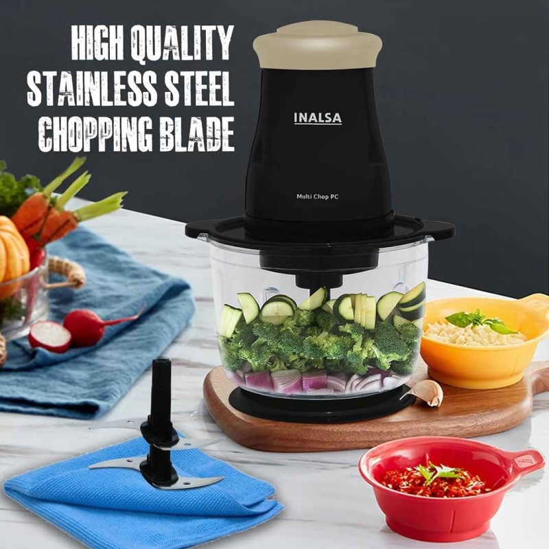 The INALSA MultiChopPc Electric Chopper is a powerful and versatile kitchen appliance designed to simplify your food preparation. With a 400W pure copper motor, 1.5L unbreakable polycarbonate bowl, double-layer stainless steel chopping blade, and additional whisking blade, this chopper is perfect for chopping, mincing, pureeing, and whisking. Its user-friendly design with a press-down button, anti-slip base, and dishwasher-safe components ensures effortless operation and maintenance. A 2-year brand warranty adds peace of mind to your purchase.