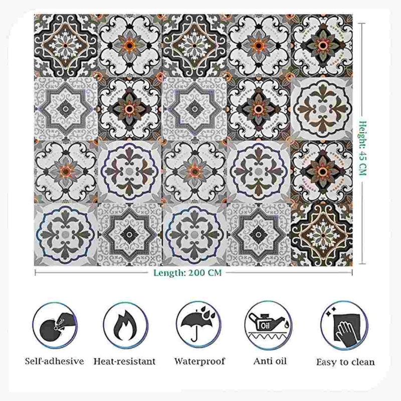 Indian Royals Bohemian tile wallpaper features a vibrant Mexican tile design made from high-quality PVC vinyl. Self-adhesive, removable, waterproof, and stain-resistant, it is ideal for decorating walls, kitchens, furniture, and other smooth surfaces. Durable and easy to apply, this wallpaper adds a stylish and colorful touch to any space.