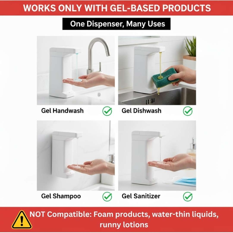 | Compatible Liquids | Gel handwash, gel sanitizers, shampoos, liquid shower gel (Not compatible with foam, watery, or cream-based liquids) |