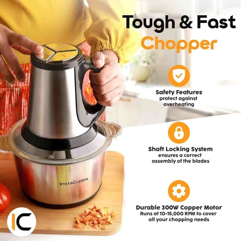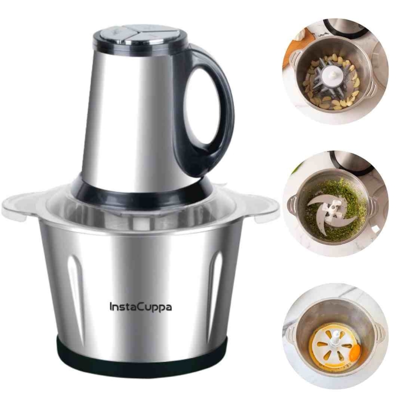 The InstaCuppa 2L Electric Chopper is a high-capacity, multi-functional kitchen appliance designed for chopping, grinding, and mincing. Equipped with a powerful motor, stainless steel blades, and a 3-speed control system, it’s ideal for effortless meal prep.