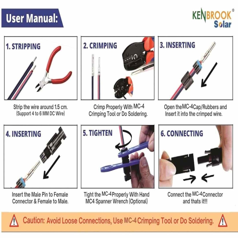 The Kenbrook Solar CT-2.5/4/6MM Crimping Tool is a durable, professional-grade tool designed for precise crimping of 2.5mm, 4mm, and 6mm solar DC cables. Built with hardened steel and a strong nylon-fiber spanner, it ensures reliable, rock-solid crimps for MC-4 connectors. Lightweight, portable, and easy to use, it delivers consistent performance for both home and professional solar installations.
