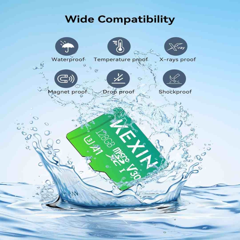 The KEXIN TF-U3-128G-KX-IN is a 128GB microSDXC card delivering high-speed performance with UHS-I U3, A1 app optimization, and V30 video speed for 4K Ultra HD and Full HD recording. Built for durability, it is drop-proof, dust-proof, wearout-proof, and X-ray proof, compatible with cameras, smartphones, tablets, gaming consoles, drones, and dashcams.