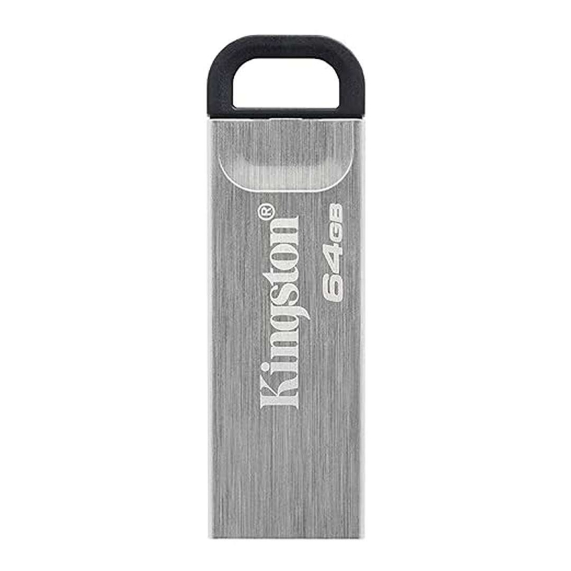 The Kingston DTKN 64GB USB 3.2 Gen 1 flash drive features a sleek metal, capless design with a functional key-ring loop for convenient everyday use. With fast read speeds up to 200MB/s and a lightweight build, it offers reliable and stylish portable storage for photos, videos, documents, and more.