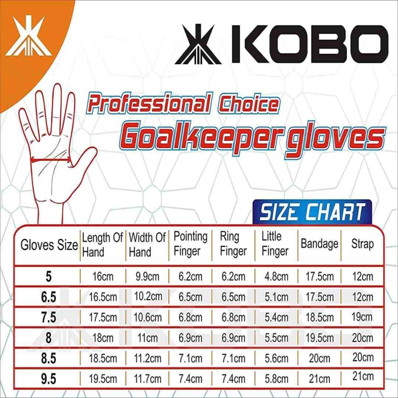 Kobo professional goalkeeper gloves featuring an ergonomic negative cut and premium German latex palm for exceptional grip and control. Designed for elite and professional keepers, these gloves offer improved finger flexibility without finger saves, a secure hook-and-loop closure, and durable construction suitable for adult players.