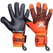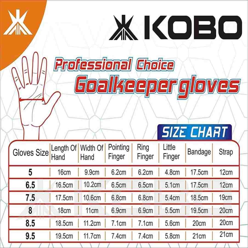 Kobo goalkeeper gloves designed for adults, featuring a Hybrid Negative Cut with a premium German latex palm. These lightweight, moisture-wicking gloves offer excellent grip, ergonomic fit, and an adjustable hook-and-loop strap. Ideal for football training or matches, with an easy pull-on loop for quick wear.