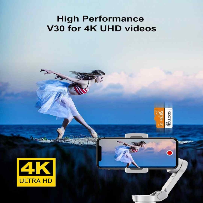 The KOOTION TF-U3-64G-IN-R is a 64GB microSDXC card designed for high-speed performance with UHS-I, U3, and V30 ratings, making it ideal for 4K video recording, gaming, and app optimization. Lightweight, waterproof, and drop-proof, it is compatible with smartphones, tablets, cameras, drones, dashcams, and more.
