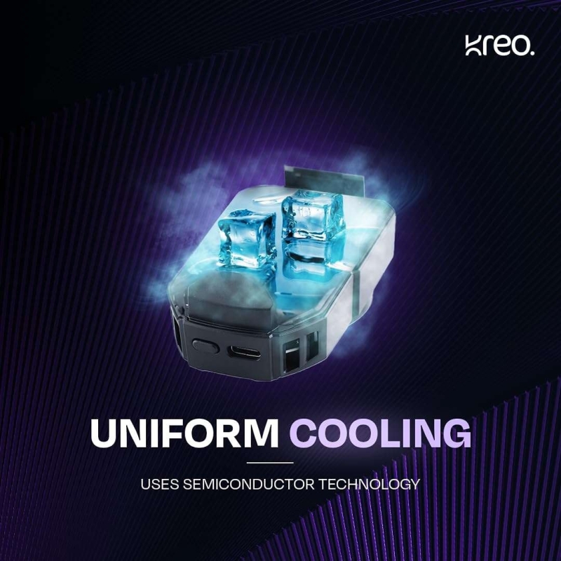 The Kreo Mobile Cooler is a compact and lightweight cooling solution designed to prevent smartphone overheating during gaming, streaming, or heavy usage. Featuring advanced semiconductor cooling with silent air circulation, it delivers rapid heat dissipation while maintaining whisper-quiet performance. Its secure clamp design ensures a snug fit, and universal compatibility makes it suitable for both Android and iPhone devices—perfect for cooling on the go.