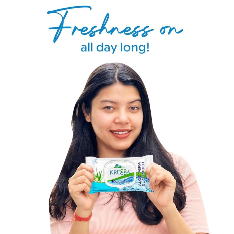 Kressa Biodegradable Wet Wipes are gentle, hydrating wipes made from natural viscose, ideal for sensitive skin. Enriched with Aloe Vera and Cucumber extracts, they soothe, moisturize, and maintain skin pH while remaining free from alcohol and parabens. Perfect for everyday use at home, office, or travel, these eco-friendly wipes ensure safe and hygienic cleansing anytime, anywhere.